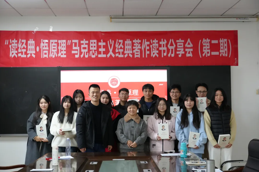 在分享环节,同学们结合专业所学与社会观察,从多维度畅谈读书感悟。汇报既有理论深度,又见青春锐气,彰显出“以读促思、以思促行”的研学实效。互动阶段气氛活跃,师生之间问答深入、教学相长,在观点碰撞中进一步深化了对原著原理的理解,凝聚起思想共识。