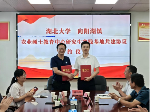 与向阳湖镇人民政府签署了农业硕士研究生实践基地共建协议,该协议标志着校地合作进入了实质性共建新阶段。