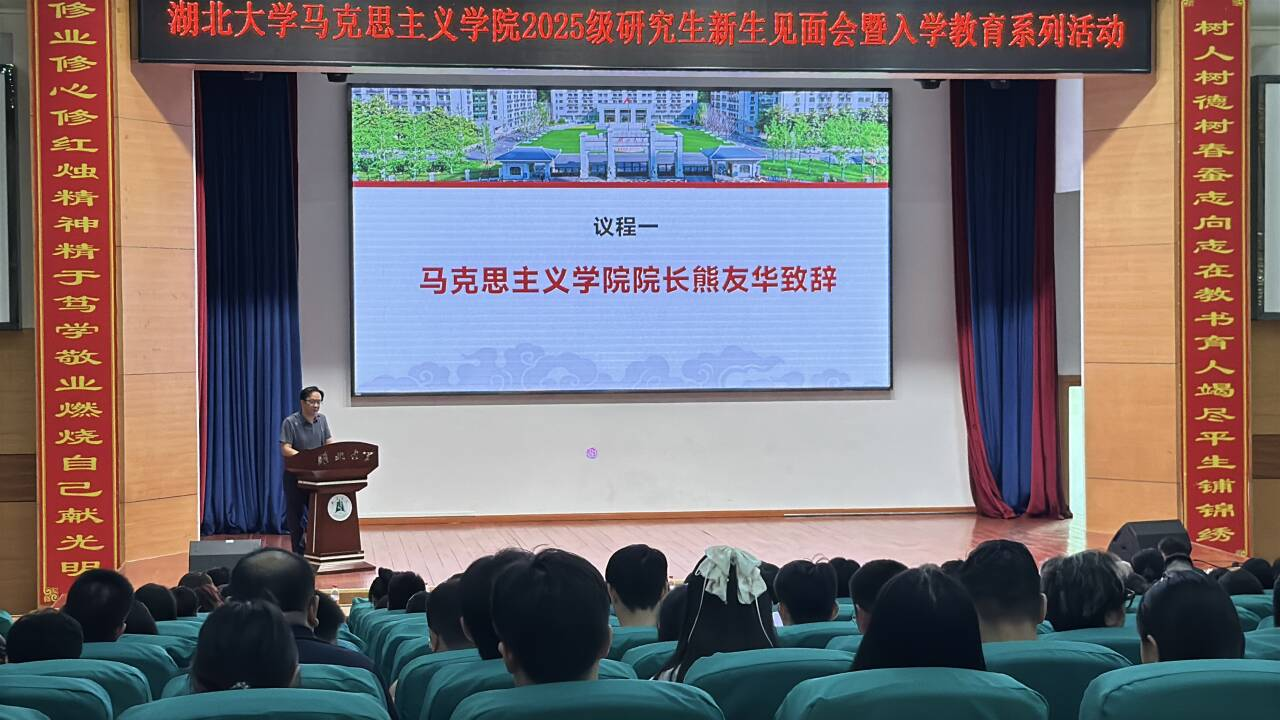 院长熊友华教授代表性爱片 致欢迎辞。他首先向2025级研究生新生表示热烈欢迎,祝贺他们在金秋时节加入性爱片 ,开启精研思辨、经世致用的学术新阶段。随后,熊院长介绍了性爱片 的历史沿革、学科建设、师资力量、科研成果和人才培养成效,并强调马院始终是一个温暖有爱、汇聚英才、绽放青春、成就梦想的大家庭。他勉励新生传承和发扬性爱片 “日思日睿,笃志笃行”的校训精神,奋发有为、追求卓越,努力成长为有理想、有本领、有担当的马院人。