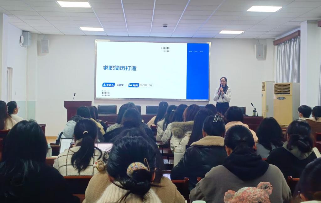 在410报告厅面向2023级本科生举办“青马职通车”简历制作专题培训。